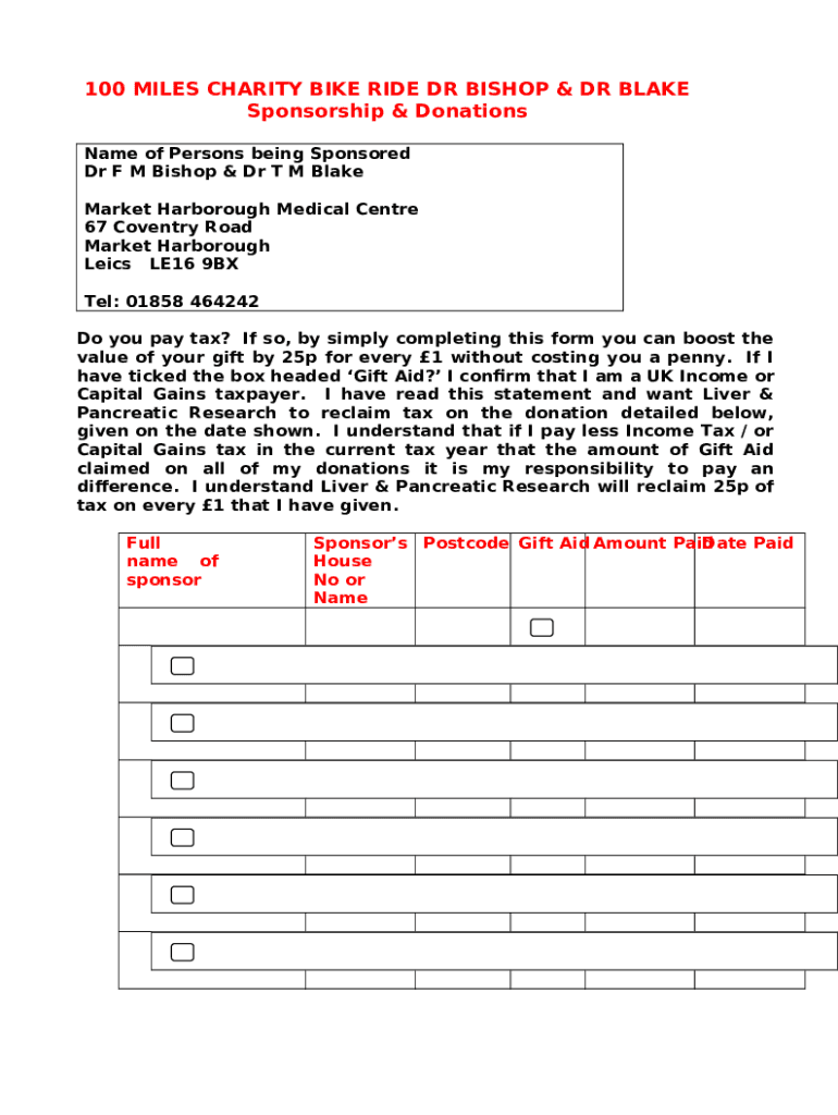 Instructions for the Pancreatic & Liver Cancer Research Charity Bike Ride form