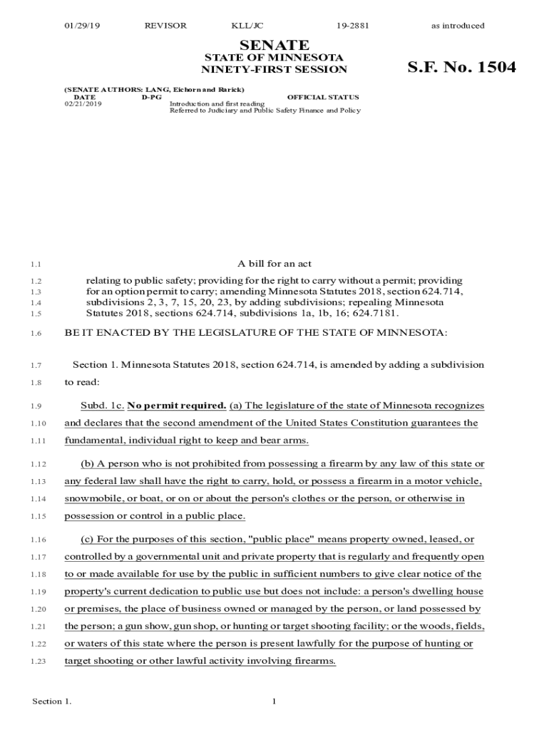 Get the free Senate - SF 1504 - MN Revisor's Office