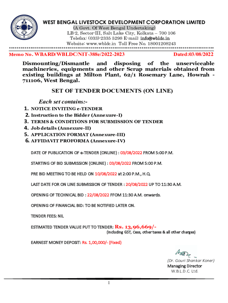 WEST BENGAL LIVESTOCK DEVELOPMENT CORPORATION LIMITED