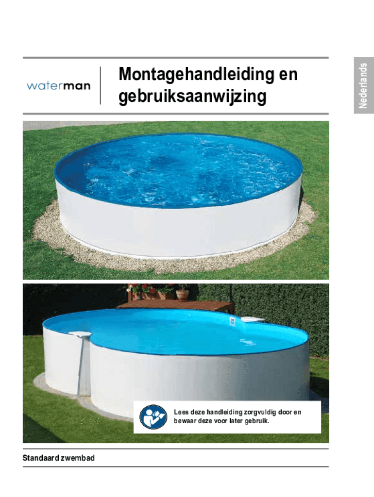 Lees deze handleiding zorgvuldig door en bewaar deze voor later gebruik.Standaard zwembad NederlandsMontagehandleiding en gebruiksaanwijzingMontagehandleiding en gebruiksaanwijzing standaard bassin2KURZANLEITUNG