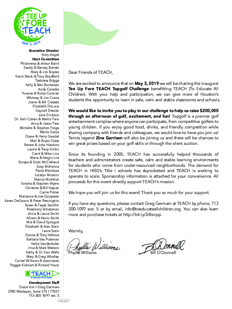 TEE UPFORE MA Y 3, 2019Executive Director Nory Angel Host Committee Philamena & Arthur Baird Sandy & Barney Barrett Mary & Jim Boyles Kevin Black & Tony Bradfield Tashiana Briggs Kelly & Ben Buchanan