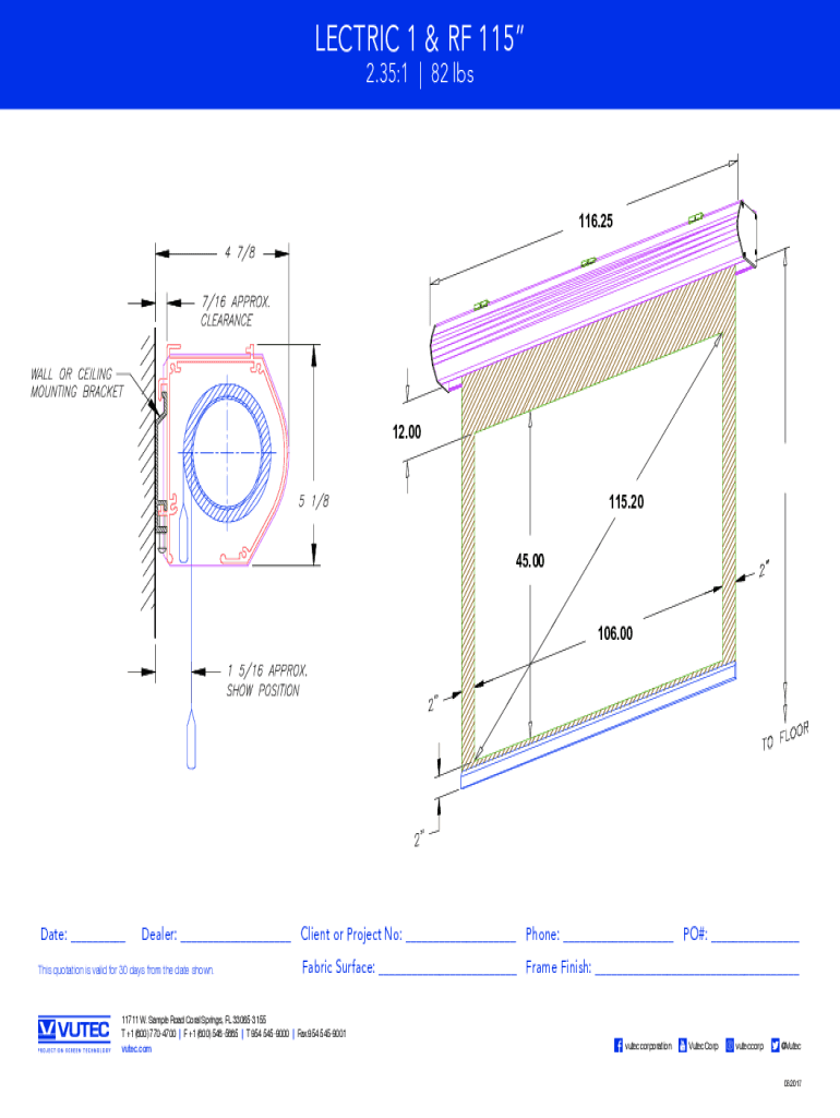 LECTRIC 1 & RF 115 2.35:1 I| (STD. 82 lbs& RF) Lectric SelfSupported Screen116.2512.00 115.20 45.00 106.00Date:2/21/2017Aspect Ratio: 2.35:1 Estimate Weight: 82.0 lbs Client or Project No: ___ Phone: