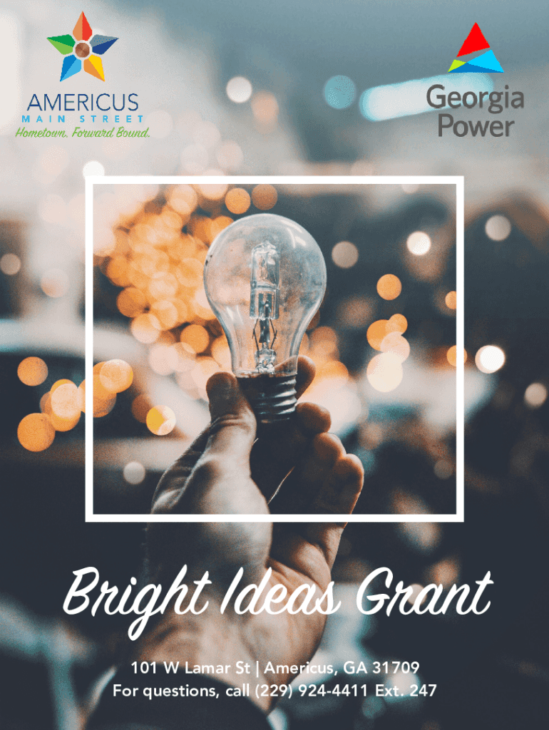 Bright Ideas Grant 101 W Lamar St | Americus, GA 31709 For questions, call (229) 9244411 Ext. 247Revised 01232020DOWNTOWN AMERICUS BRIGHT IDEAS! GRANT PROGRAM OVERVIEW Sponsored by:PROGRAM OBJECTIVES
