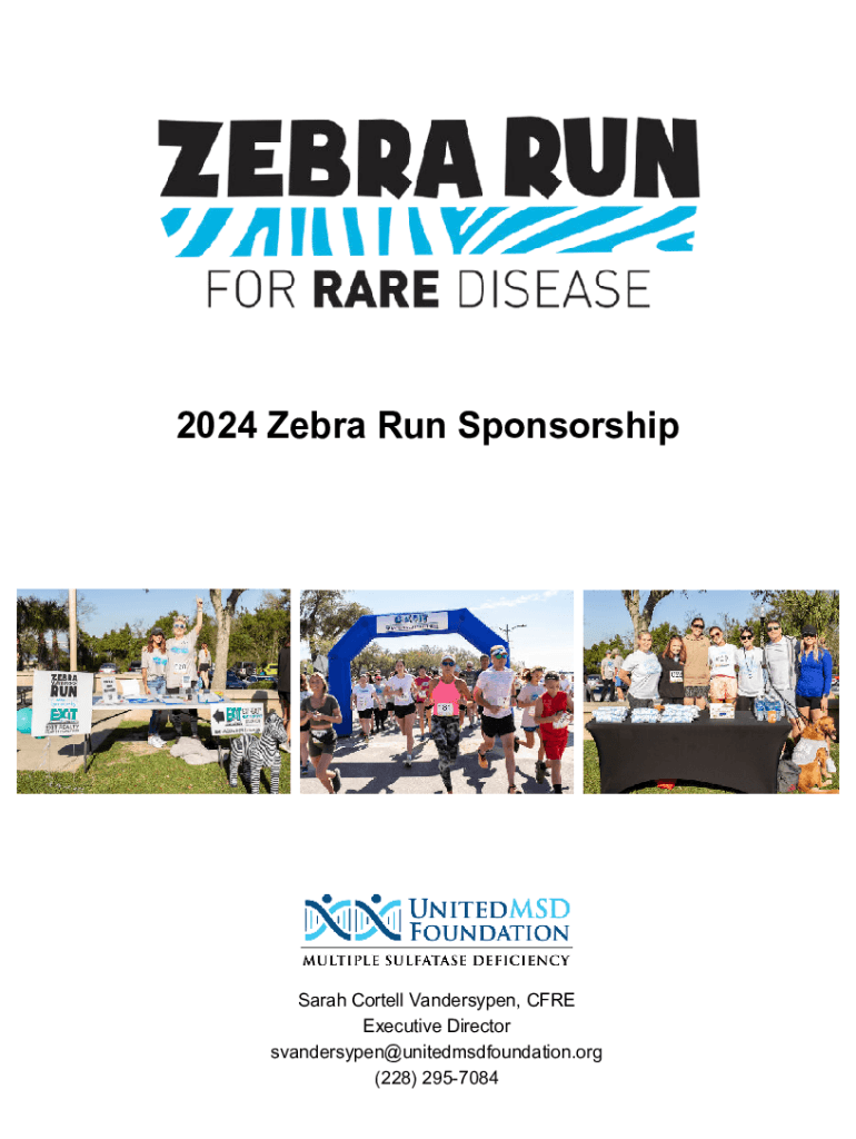 2024 Zebra Run SponsorshipSarah Cortell Vandersypen, CFRE Executive Director svandersypen@unitedmsdfoundation.org (228) 2957084The United MSD Foundations Zebra Run for Rare Disease is back for its