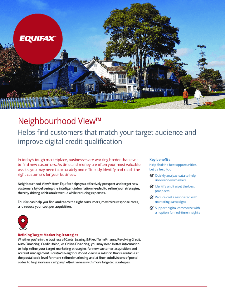Neighbourhood View Helps find customers that match your target audience and improve digital credit qualification In todays tough marketplace, businesses are working harder than ever to find new customers.