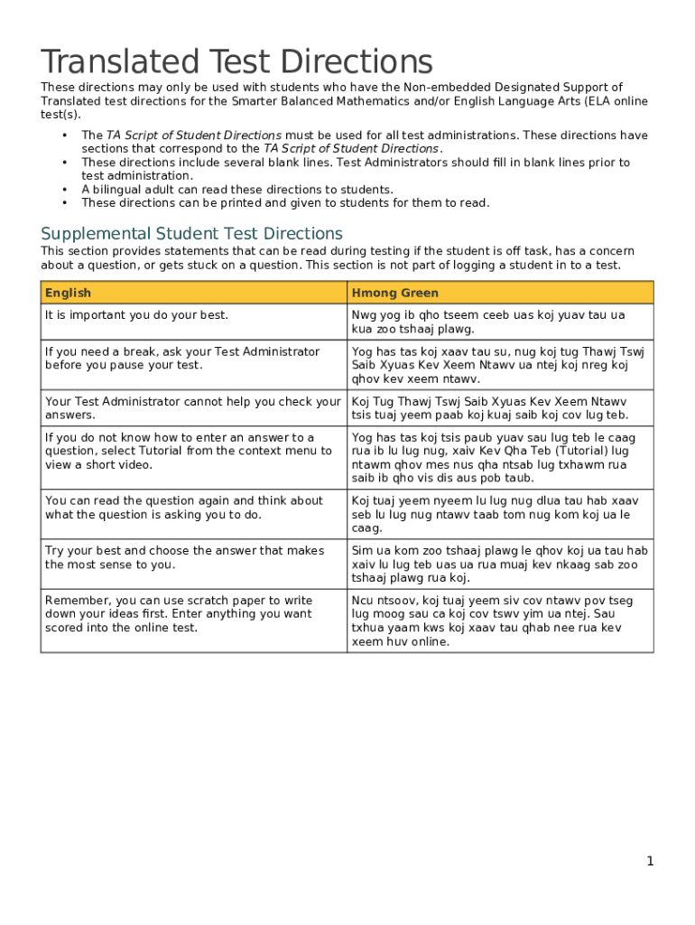 Smarter Balanced Online Translated Test Directions Somali template instructions