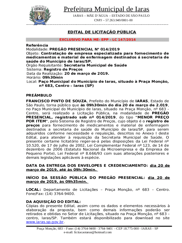 The OBJETO: Contratao de empresa especializada na rea de ... is a writable document that has to be filled-out and signed for specific purposes. Next, it is provided to the relevant addressee to provide some info and data. The completion and signing may be done manually or via a trusted solution like PDFfiller. Such services help to submit any PDF or Word file without printing out. It also lets you edit it depending on your needs and put an official legal digital signature. Upon finishing, you send the OBJETO: Contratao de empresa especializada na rea de ... to the respective recipient or several ones by email or fax. PDFfiller has a feature and options that make your template printable. It includes a number of settings when printing out appearance. It doesn't matter how you will send a form after filling it out - in hard copy or electronically - it will always look well-designed and organized. In order not to create a new editable template from scratch again and again, turn the original Word file into a template. After that, you will have a rewritable sample.