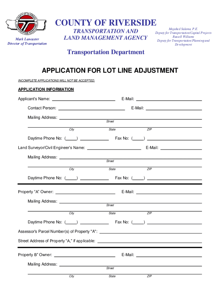 COUNTY OF RIVERSIDE Mark Lancaster Director of TransportationTRANSPORTATION AND LAND MANAGEMENT AGENCYMojahed Salama, P.E. Deputy for Transportation/Capital Projects Russell Williams Deputy for Transportation/Planning