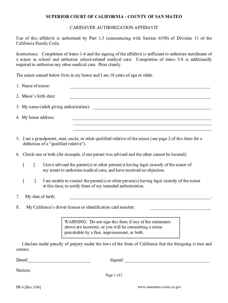 Get the free Cargiver Authorization Affidavit :: California :: Probate :: San Mateo