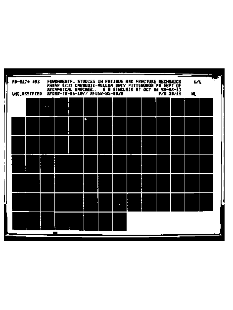 RDAi74 493 UNCLASSIFIEDFUNDAMENTRL STUDIES IN FATIGUE AND FRACTURE MECHANICS PHASE l(U) CRRNEGIEHELLON UNIV PITTSBURGH PR DEPT OF G B SINCLRIR 07 OCT 96 SH8613 MECHRNICRL ENGINEE.. RFOSRTR6977 RFOSR850039
