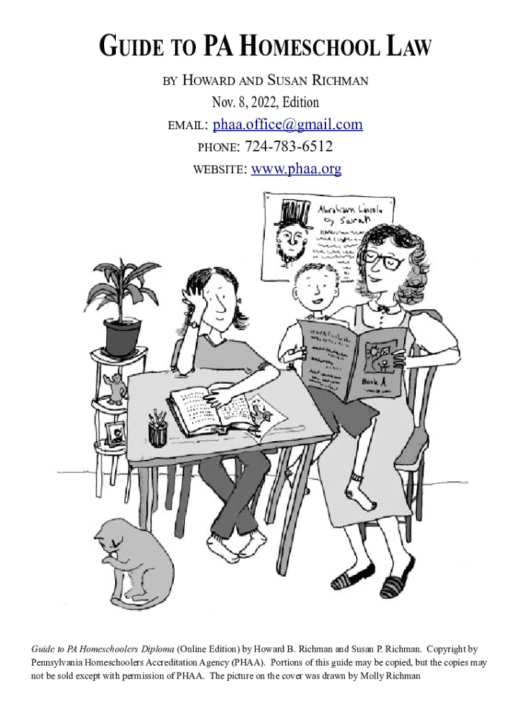 GUIDE TO PA HOMESCHOOL LAW HOWARD AND SUSAN RICHMAN Nov. 8, 2022, Edition EMAIL: phaa.office@gmail.com PHONE: 7247836512 WEBSITE: www.phaa.orgBYGuide to PA Homeschoolers Diploma (Online Edition) by