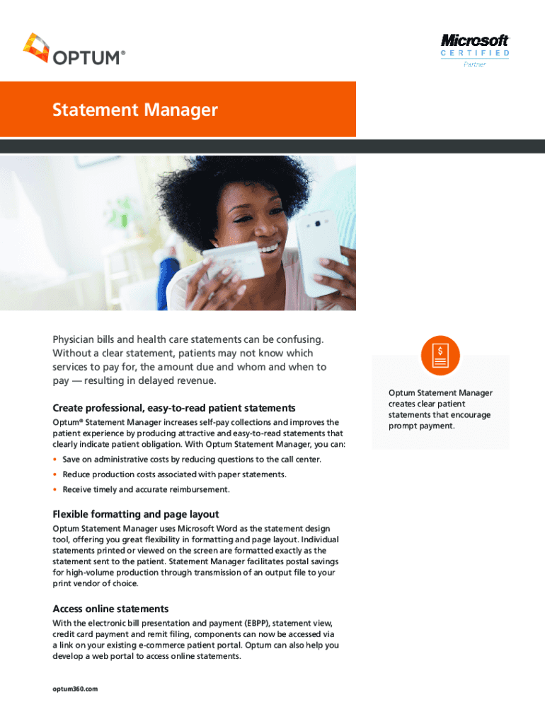 Statement ManagerPhysician bills and health care statements can be confusing. Without a clear statement, patients may not know which services to pay for, the amount due and whom and when to pay resulting