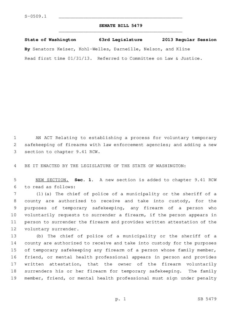 S0509.1___ SENATE BILL 5479 ___State of Washington63rd Legislature2013 Regular SessionBy Senators Keiser, KohlWelles, Darneille, Nelson, and Kline Read first time 01/31/13.Referred to Committee on