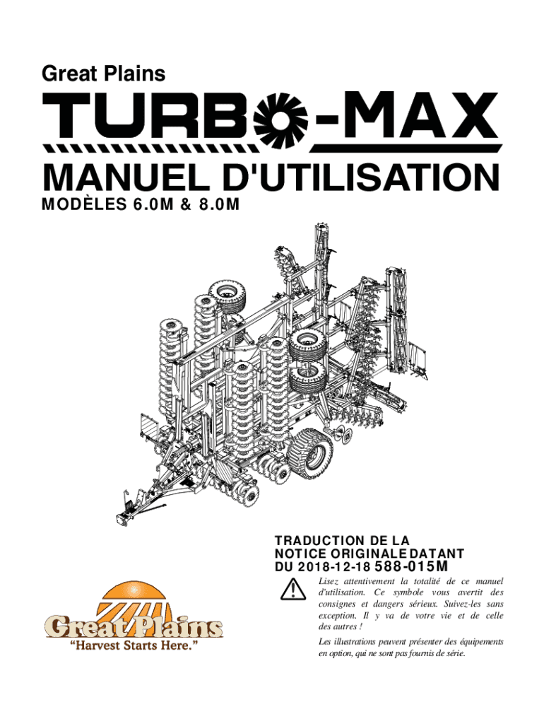 Great PlainsMANUEL D\'UTILISATION MODLES 6.0M & 8.0MTRADUCTION DE LA NOTICE ORIGINALE DATANT DU 20181218 588015M!Lisez attentivement la totalit de ce manuel d\'utilisation. Ce symbole vous avertit