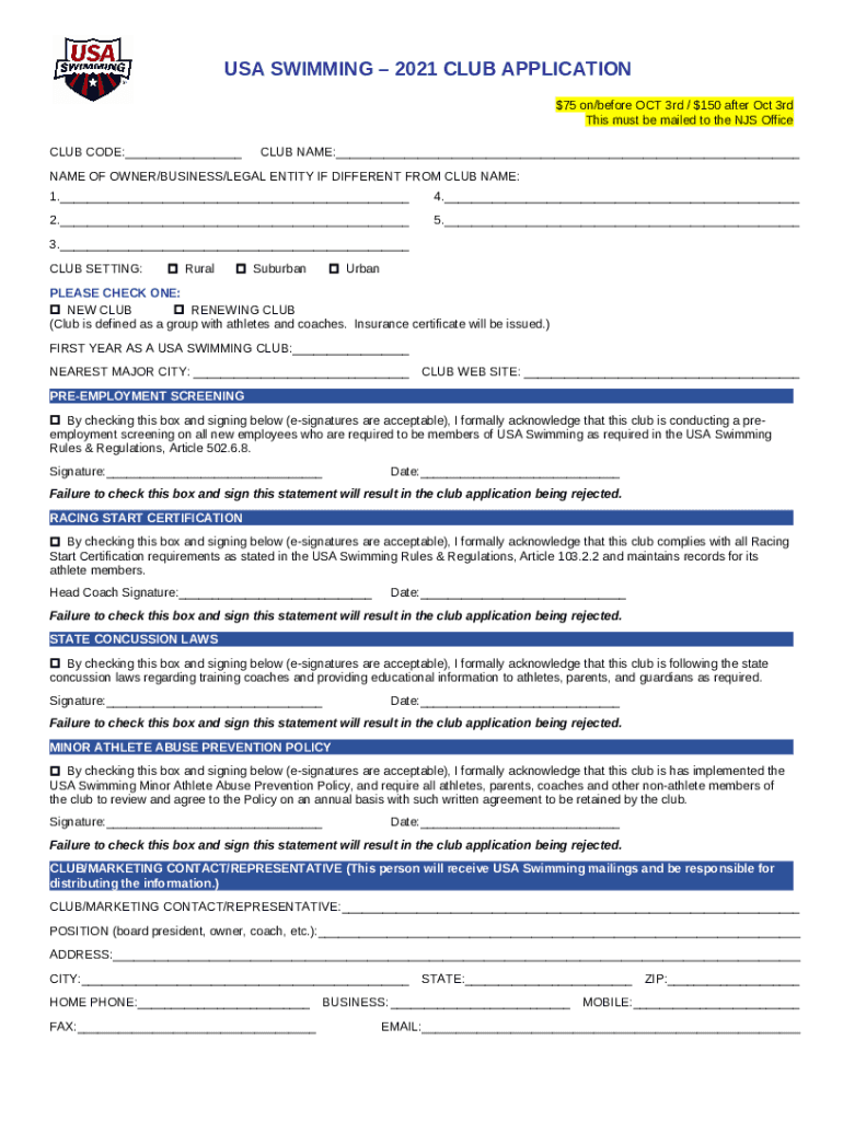 How should you fill out the New Jersey Swimming : s/Documentation template