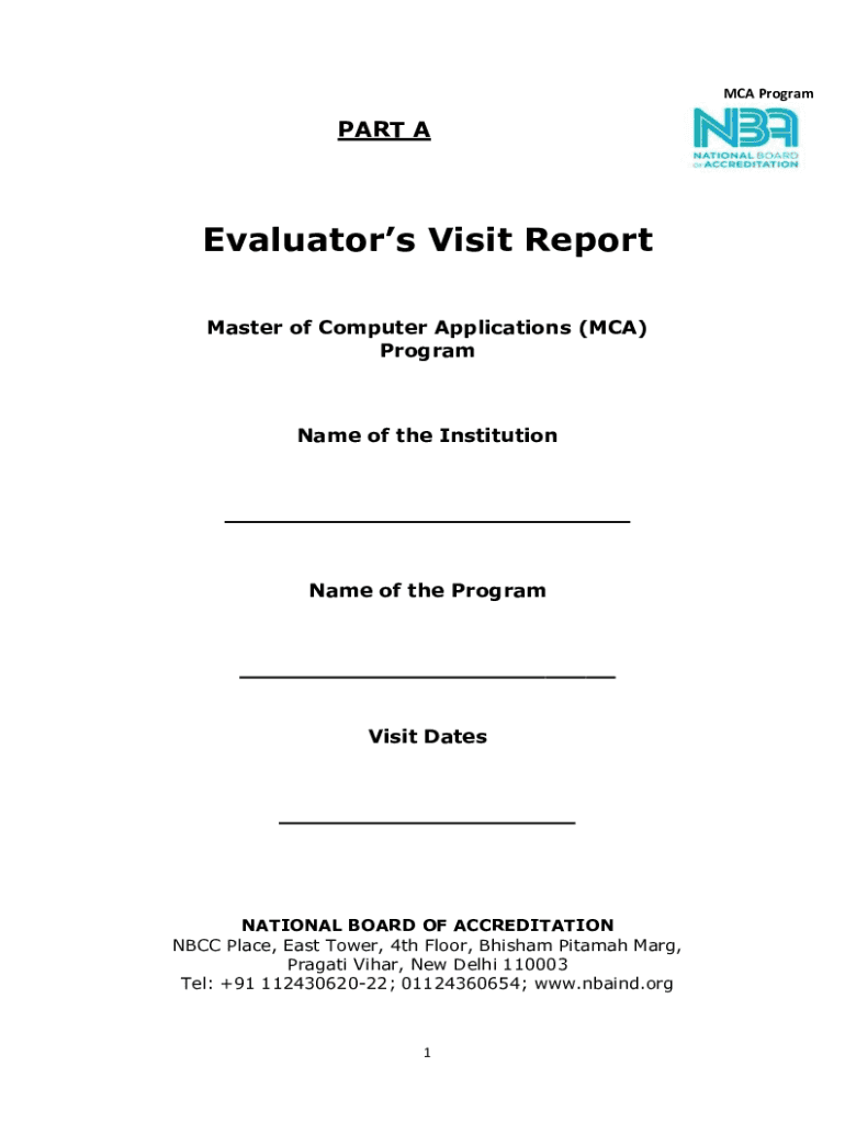 MCA ProgramPART AEvaluators Visit Report Master of Computer Applications (MCA) ProgramName of the InstitutionName of the ProgramVisit DatesNATIONAL BOARD OF ACCREDITATION NBCC Place, East Tower, 4th