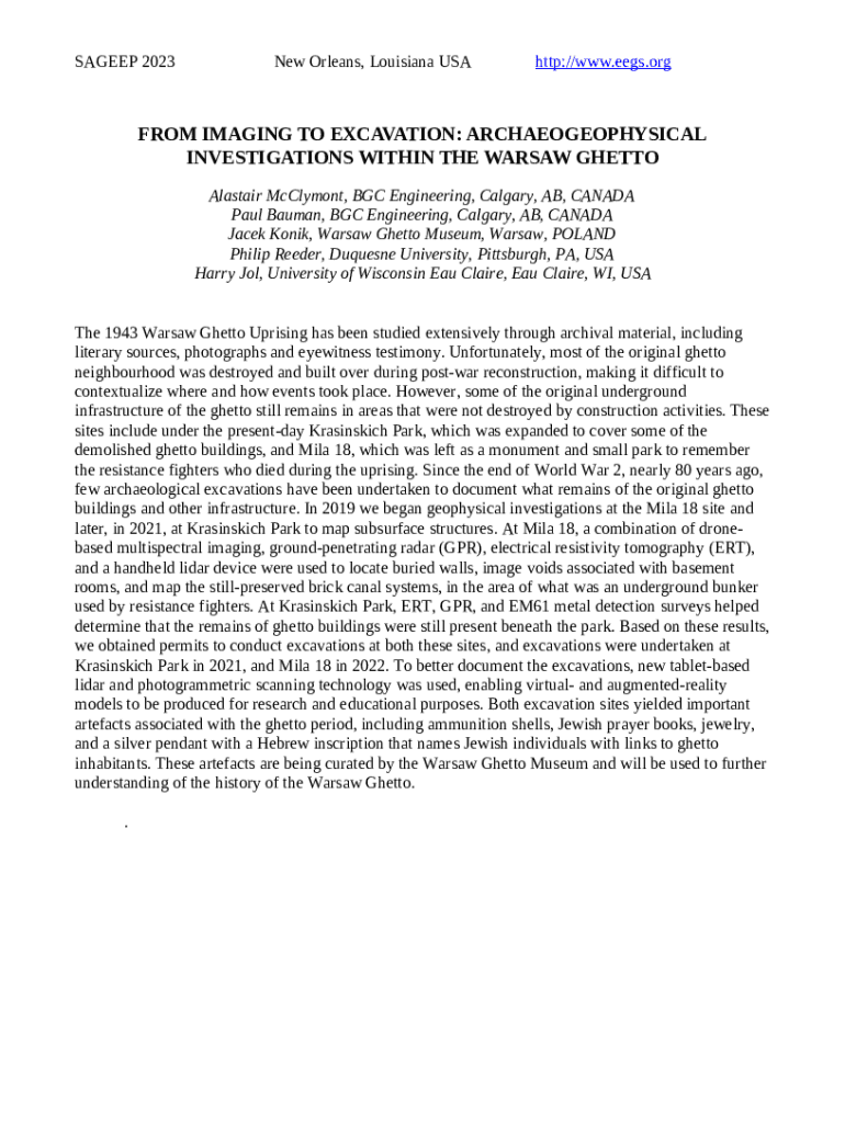 The SAGEEP Abstract Template is a document that should be submitted to the relevant address to provide specific info. It has to be filled-out and signed, which may be done in hard copy, or by using a particular solution such as PDFfiller. This tool lets you complete any PDF or Word document directly from your browser (no software requred), customize it depending on your needs and put a legally-binding electronic signature. Once after completion, you can send the SAGEEP Abstract Template to the relevant receiver, or multiple ones via email or fax. The blank is printable too thanks to PDFfiller feature and options presented for printing out adjustment. Both in digital and in hard copy, your form will have a organized and professional outlook. Also you can save it as the template to use it later, so you don't need to create a new document again. You need just to amend the ready form.