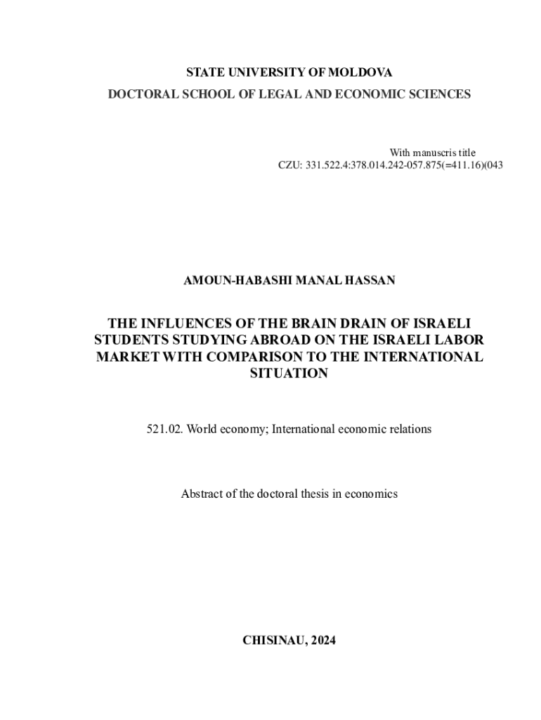 STATE UNIVERSITY OF MOLDOVA DOCTORAL SCHOOL OF LEGAL AND ECONOMIC SCIENCESWith manuscris title CZU: 331.522.4:378.014.242057.875(411.16)(043AMOUNHABASHI MANAL HASSANTHE INFLUENCES OF THE BRAIN DRAIN