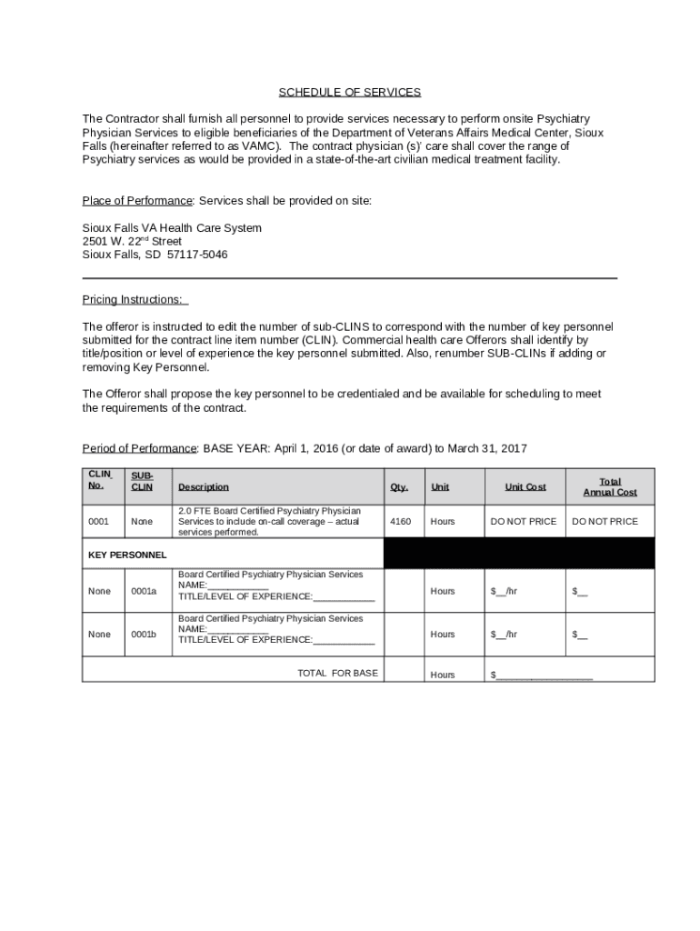 Instructions for the Perance Work Statement for Onsite Emergency ... form