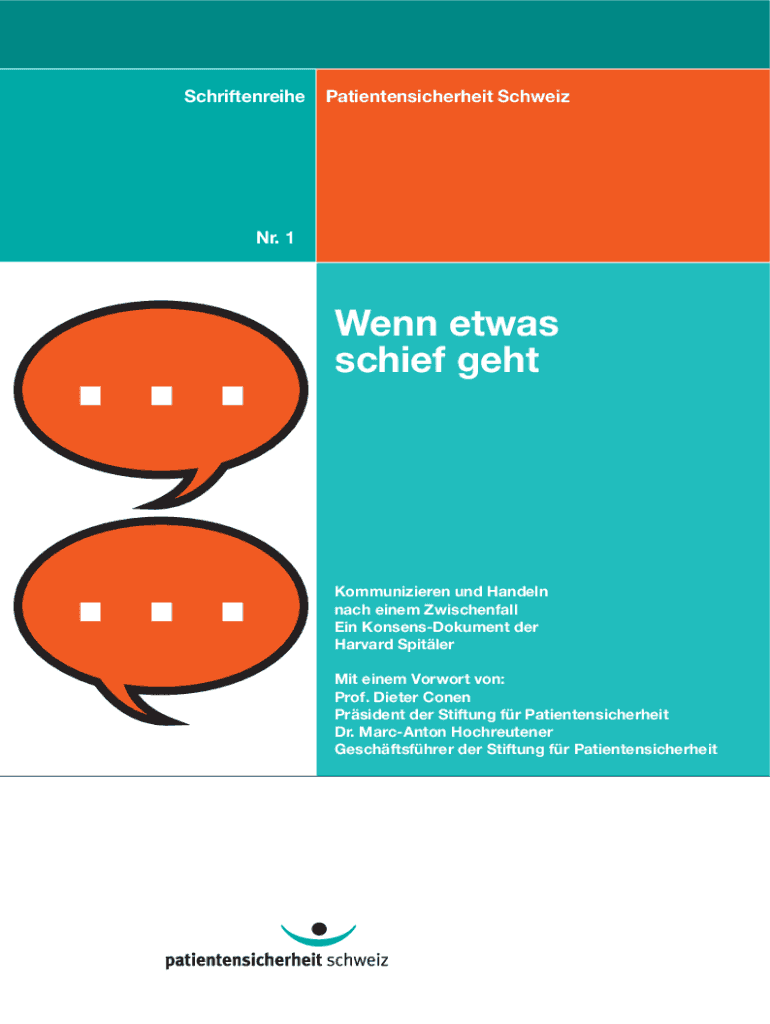 SchriftenreihePatientensicherheit SchweizNr. 1Wenn etwas schief gehtKommunizieren und Handeln nach einem Zwischenfall Ein KonsensDokument der Harvard Spitler Mit einem Vorwort von: Prof. Dieter Conen