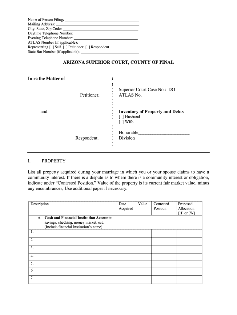 Name of Person Filing: Mailing Address: City, State, Zip Code: Daytime Telephone Number: Evening Telephone Number: ATLAS Number (if applicable): Representing Self Petitioner Respondent State Bar Number
