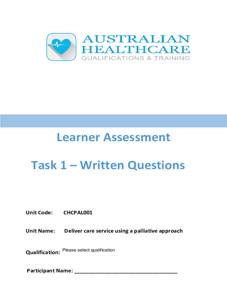 Learner Assessment Task 1 Written QuestionsUnit Code:CHCPAL001Unit Name:Deliver care service using a palliative approachQualification:Please select qualificationParticipant Name: ___Version Control: