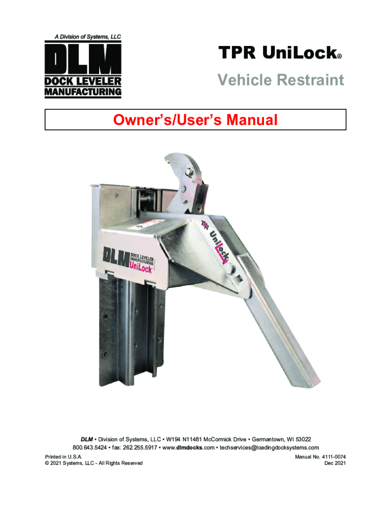 Owners/Users Manual DLM Division of Systems, LLC W194 N11481 McCormick Drive Germantown, WI 53022