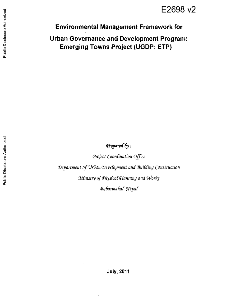 Environmental Management Framework for Urban Governance and Development Program: Emerging Towns Project (UGDP: ETP)Public Disclosure AuthorizedPublic Disclosure AuthorizedPublic Disclosure AuthorizedE2698