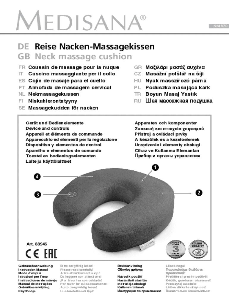 NM 870DE Reise NackenMassagekissen GB Neck massage cushion FR IT ES PT NL FI SECoussin de massage pour la nuque Cuscino massaggiante per il collo Cojn de masaje para el cuello Almofada de massagem
