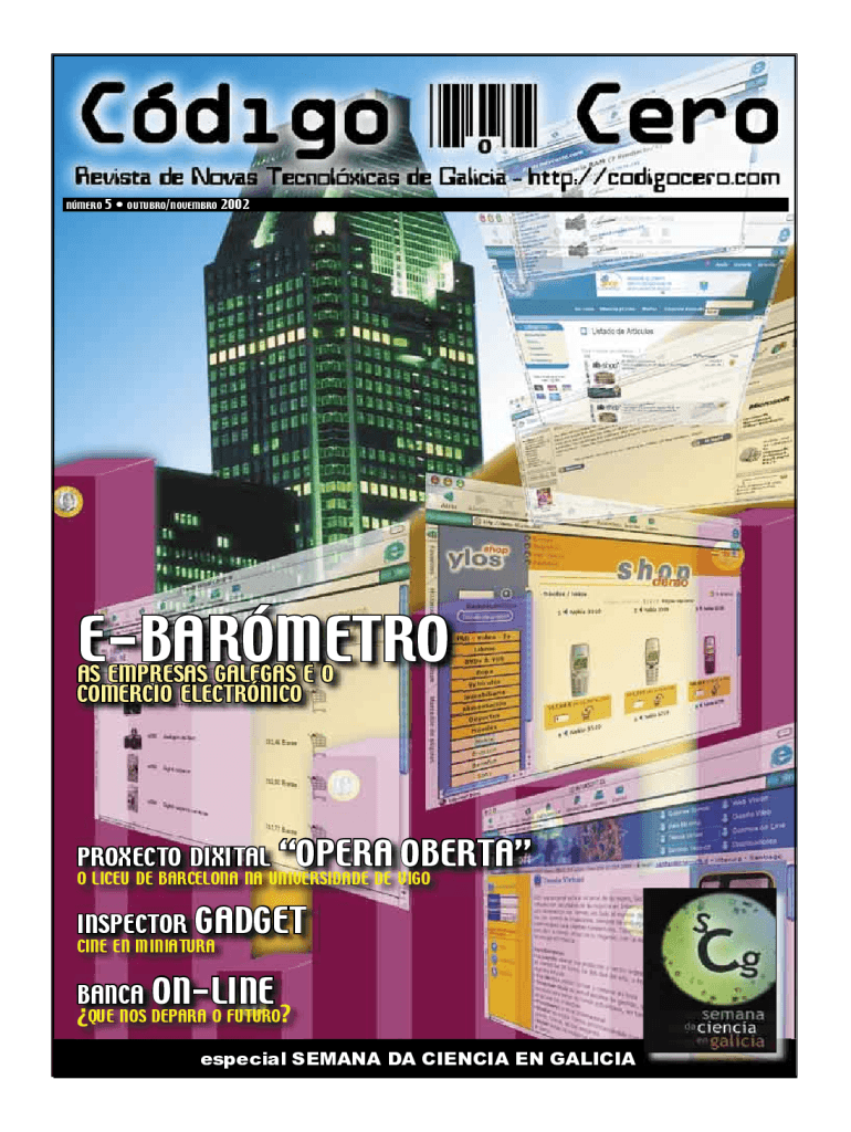 NMERO5 OUTUBRO/NOVEMBRO 2002EBARMETRO AS EMPRESAS GALEGAS E O COMERCIO ELECTRNICOPROXECTO DIXITALOPERA OBERTAO LICEU DE BARCELONA NA UNIVERSIDADE DE VIGOINSPECTORGADGETCINE EN MINIATURABANCA ONLINE