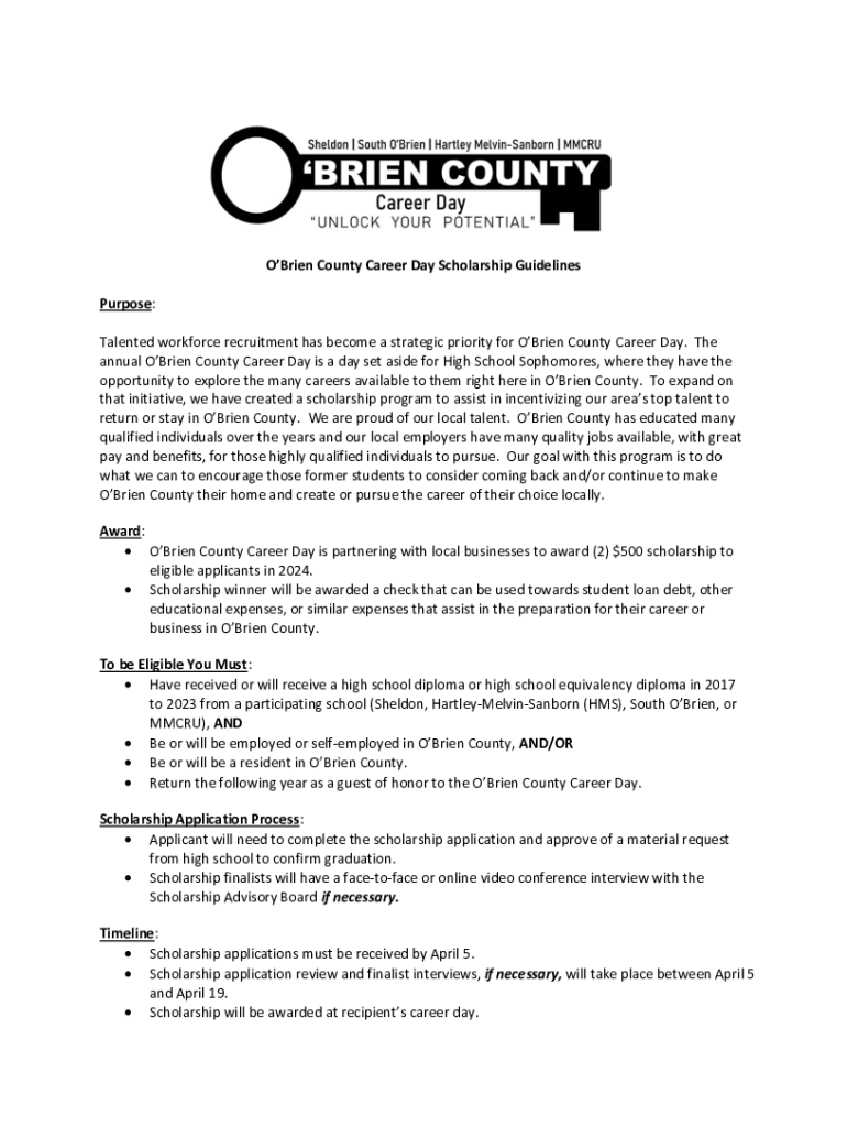 Get the free O'Brien County Career Day Scholarship Guidelines Purpose ...