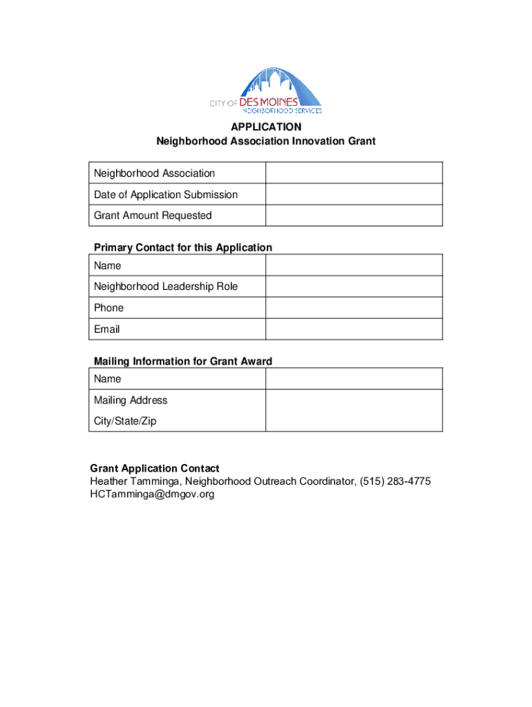 Neighborhood Association Innovation Grant is not the form you're looking for?Search for another form here.