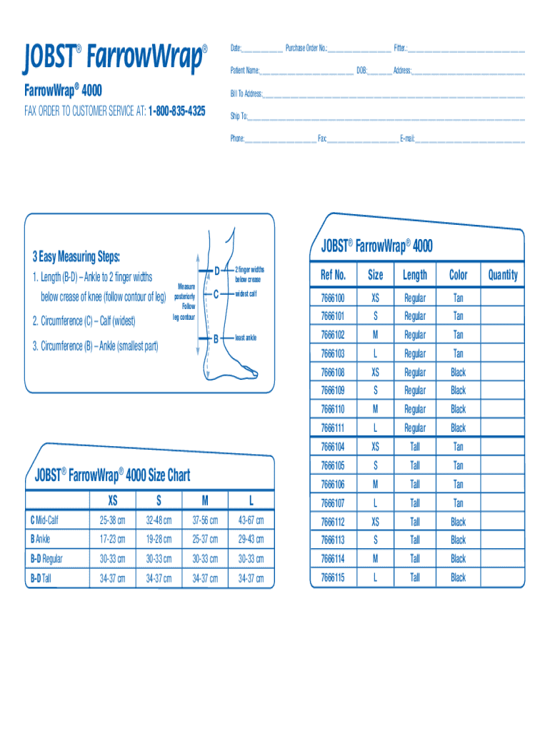 JOBST FarrowWrap Date:___ Purchase Order No.:___ Fitter.:___ Patient Name:___ DOB:___ Address:___FarrowWrap 4000Bill To Address:___FAX ORDER TO CUSTOMER SERVICE AT: 18008354325Ship To:___Phone:___