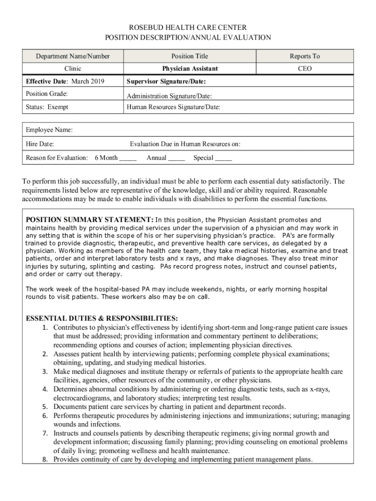 Department Name/Superposition TitleReports ToClinicPhysician AssistantCEOEffective Date: March 2019Supervisor Signature/Date:Position