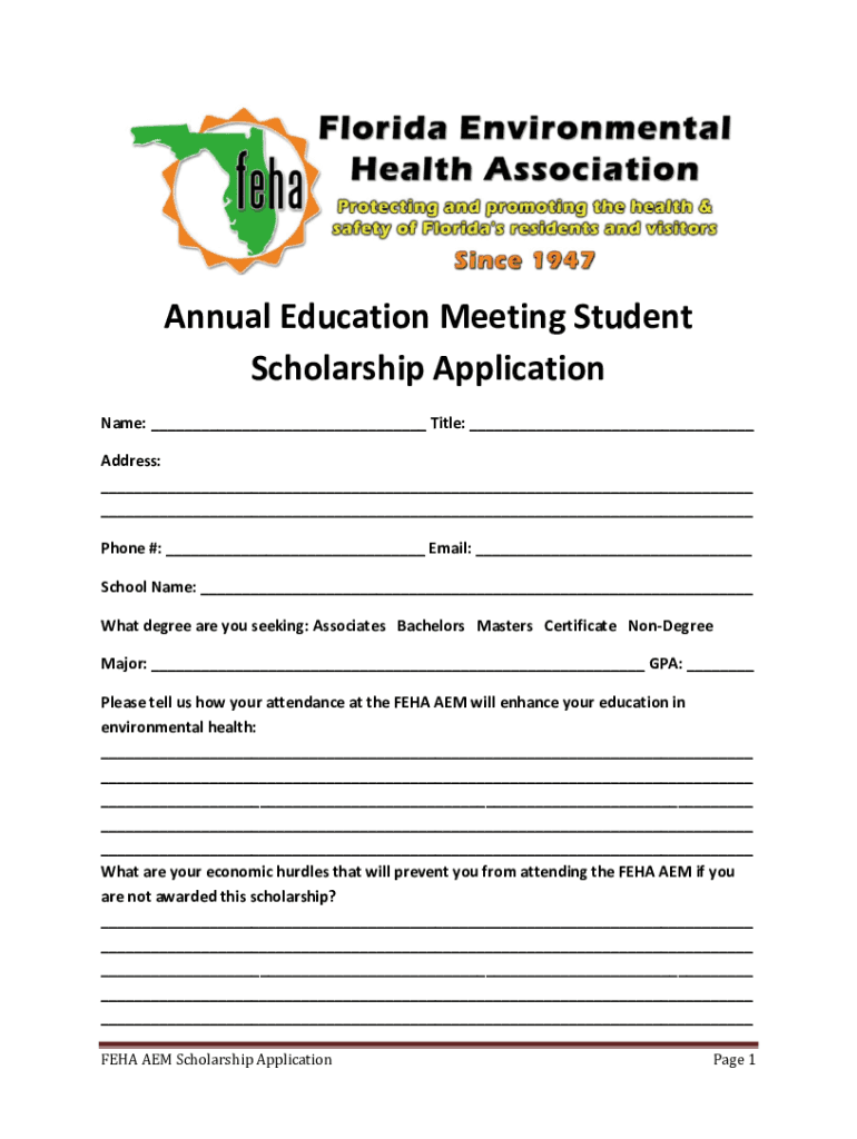 Annual Education Meeting Student Scholarship Application Name: ___ Title: ___ Address: ___ ___ Phone #: ___ Email: ___ School Name: ___ What degree are you seeking: Associates Bachelors Masters Certificate