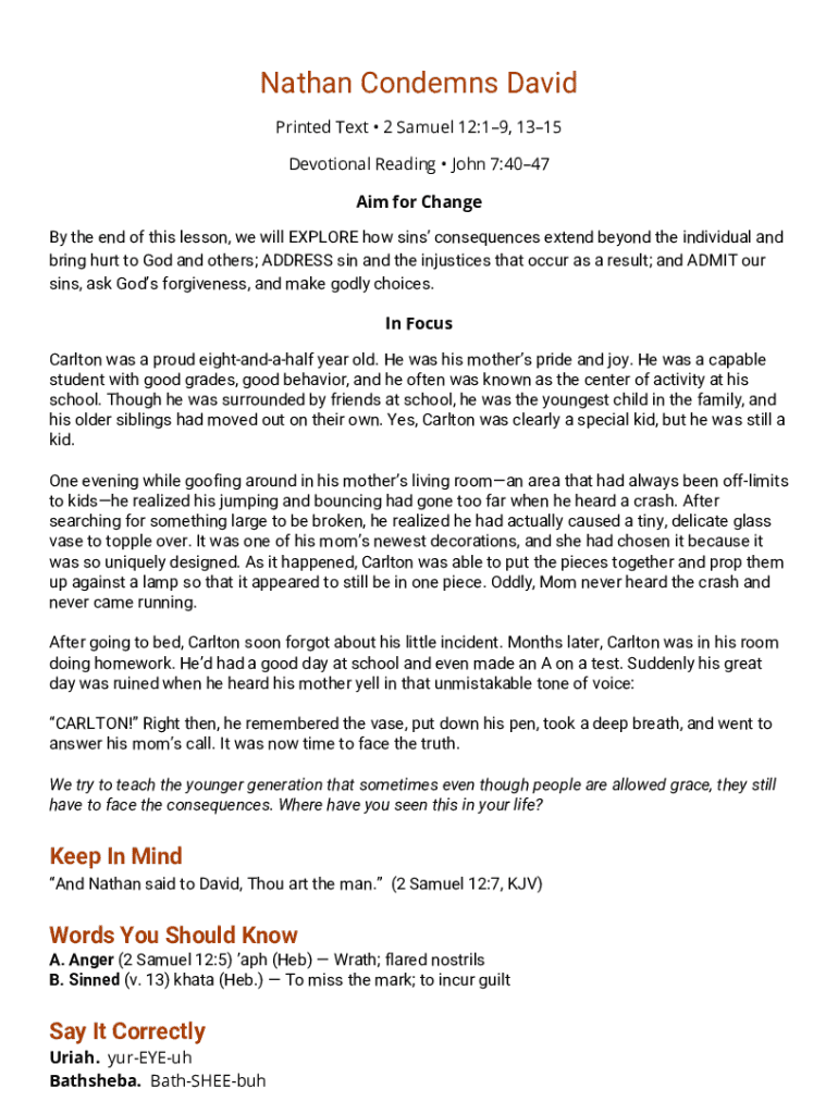 Fill out your nathan condemns david online with pdfFiller!