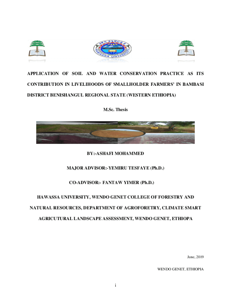 APPLICATION OF SOIL AND WATER CONSERVATION PRACTICE AS ITS CONTRIBUTION IN LIVELIHOODS OF SMALLHOLDER FARMERS IN BAMBASI DISTRICT BENISHANGUL REGIONAL STATE (WESTERN ETHIOPIA) M.Sc. ThesisBY:ASHAFI