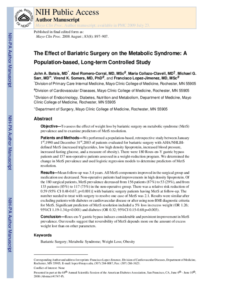 NIH Public Access Author Manuscript Mayo Clin Proc. Author manuscript; available in PMC 2009 July 23.NIHPA Author ManuscriptPublished in final edited form as: Mayo Clin Proc. 2008 August ; 83(8):