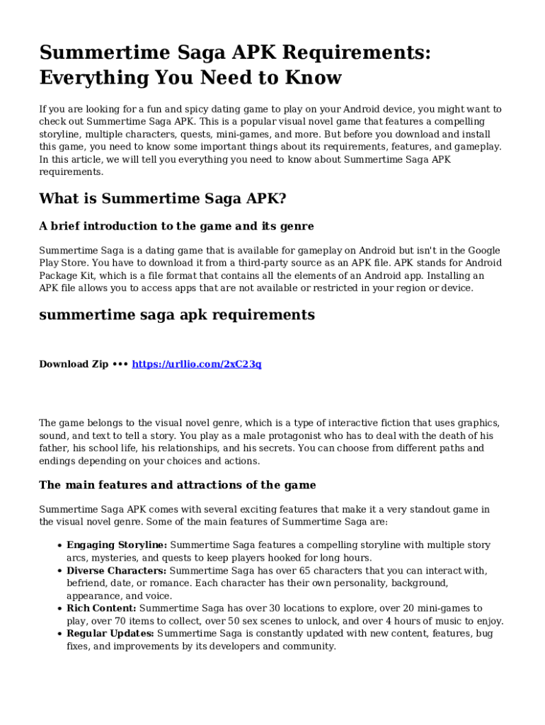 Summertime Saga APK Requirements: Everything You Need to Know If you are looking for a fun and spicy dating game to play on your Android device, you might want to check out Summertime Saga APK. This