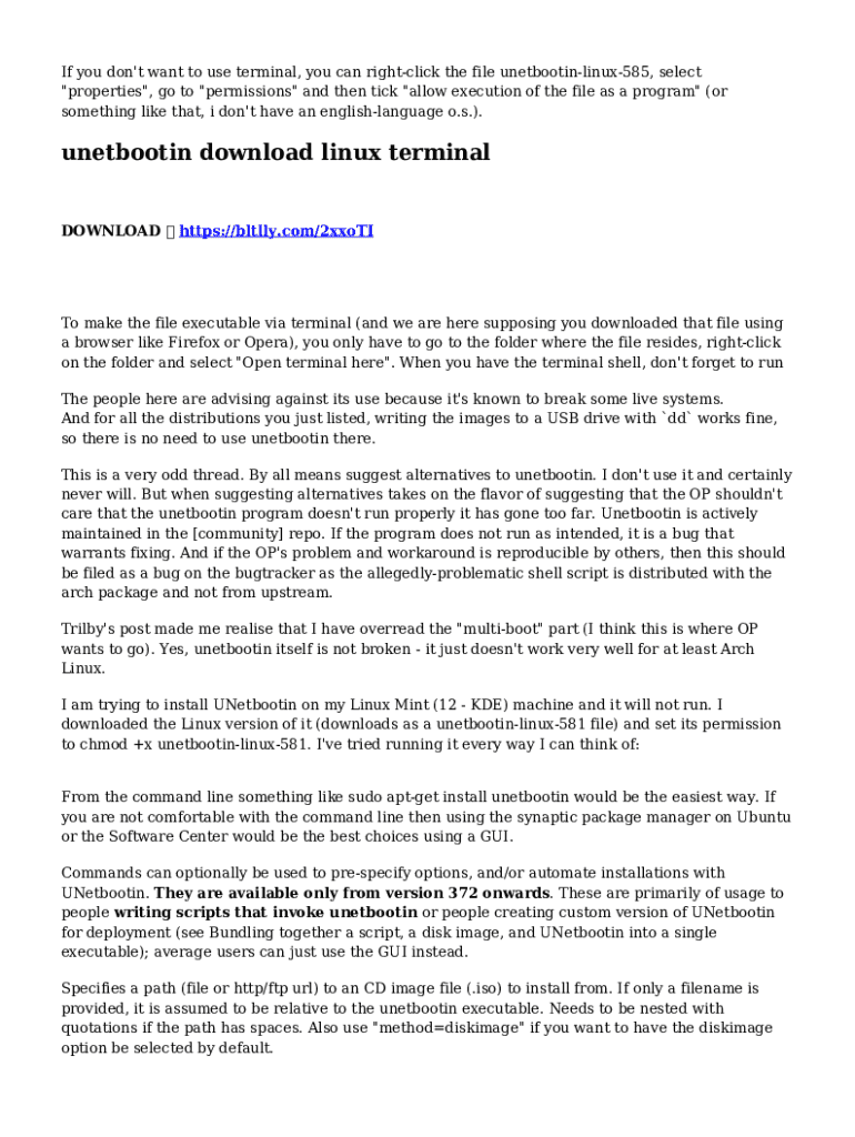 How to fill out how to download unetbootin