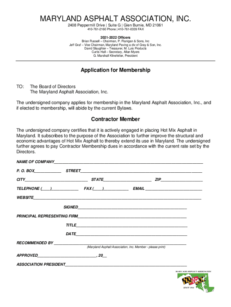 MARYLAND ASPHALT ASSOCIATION, INC. 2408 Peppermill Drive | Suite G | Glen Burnie, MD 21061 4107612160 Phone | 4107610339 FAX20212022 Officers Brian Russell Chairman, P. Flanigan & Sons, Inc Jeff Graf