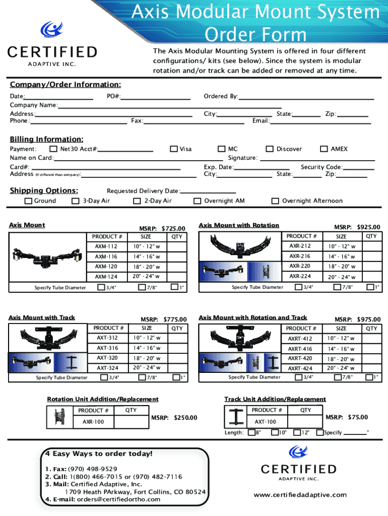 Get the free Axis Modular Mounting System Order Form
