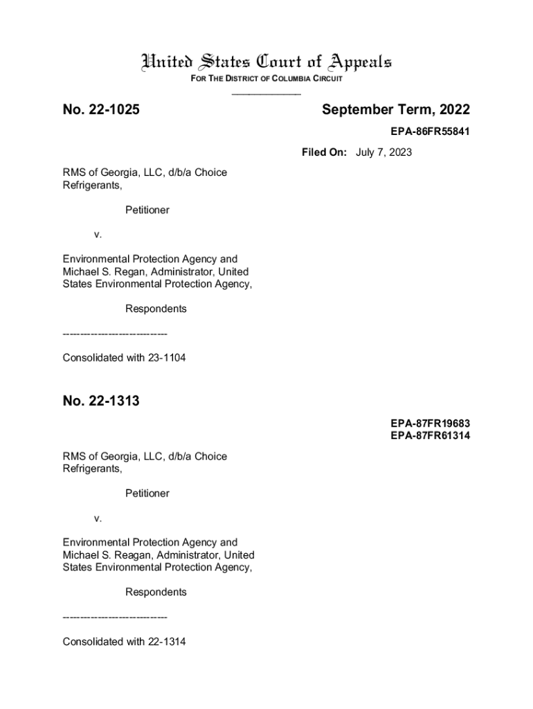 Get the free RMS of Georgia, LLC d/b/a Choice Refrigerants v. EPA