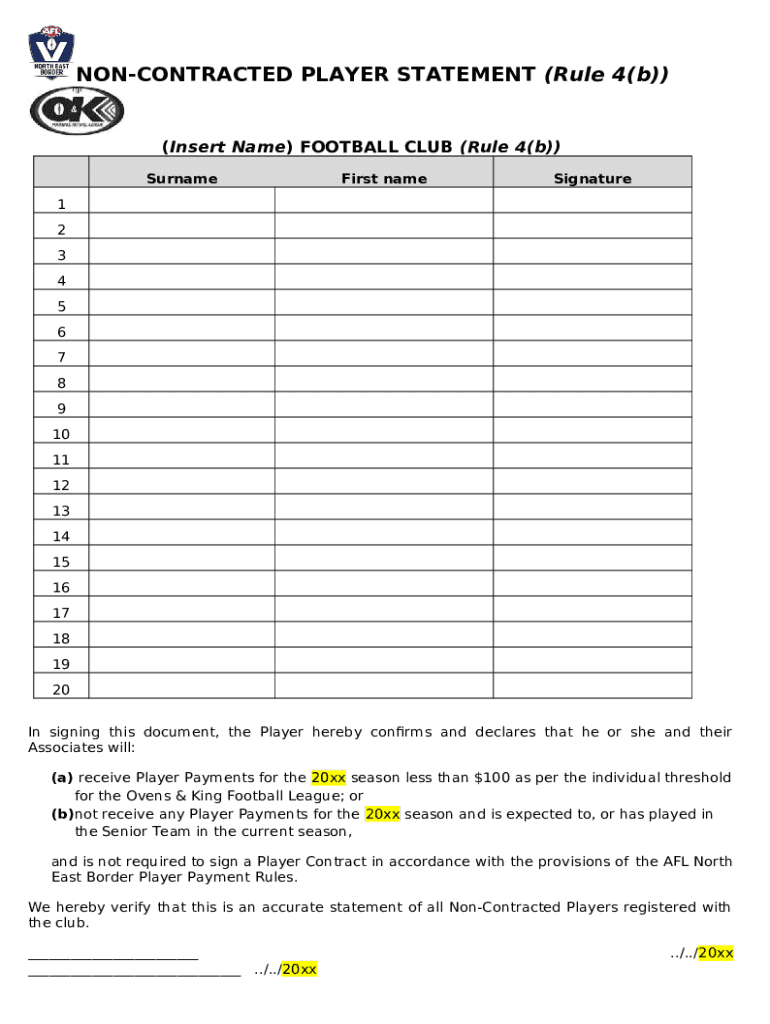 Frequently asked questions about the form NON-CONTRACTED PLAYER STATEMENT (Rule 4(b ...