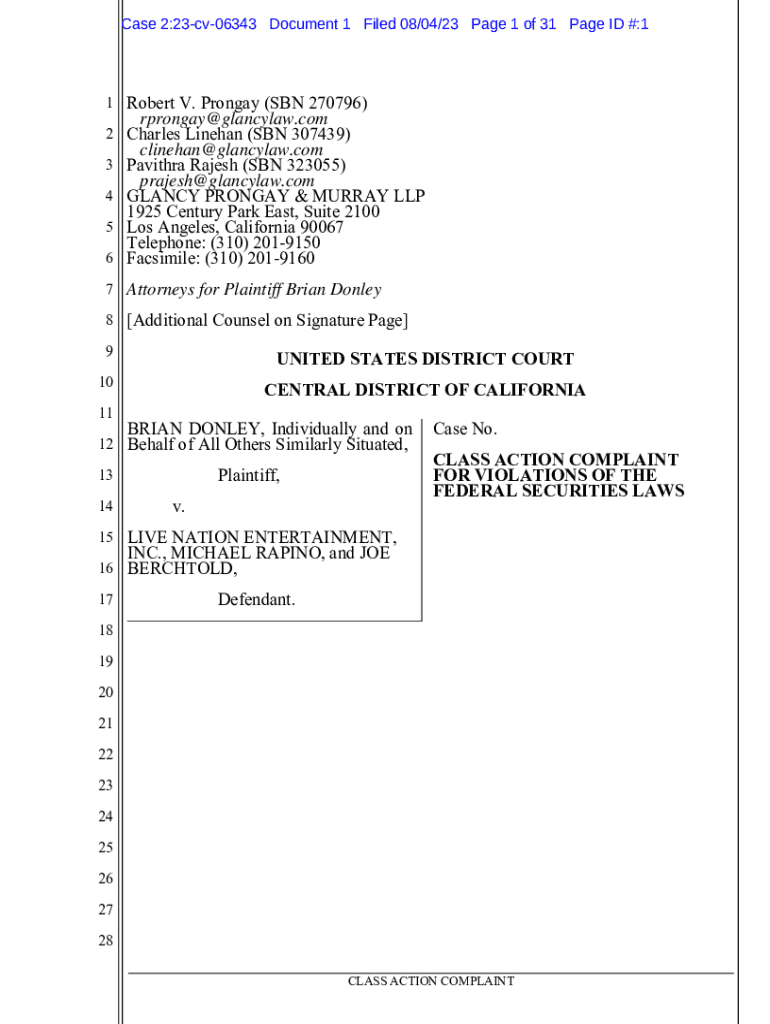 Get the free Brian Donley, et al. v. Live Nation Entertainment, Inc., et al. 23-CV-06343-Class Ac...