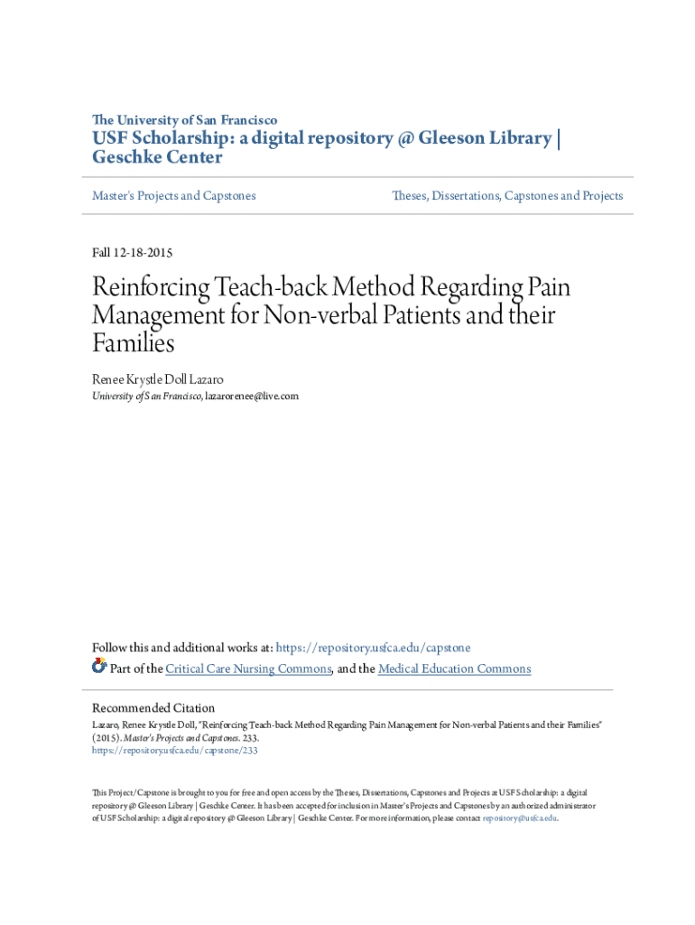 Get the free Reinforcing Teach-back Method Regarding Pain Management for ...