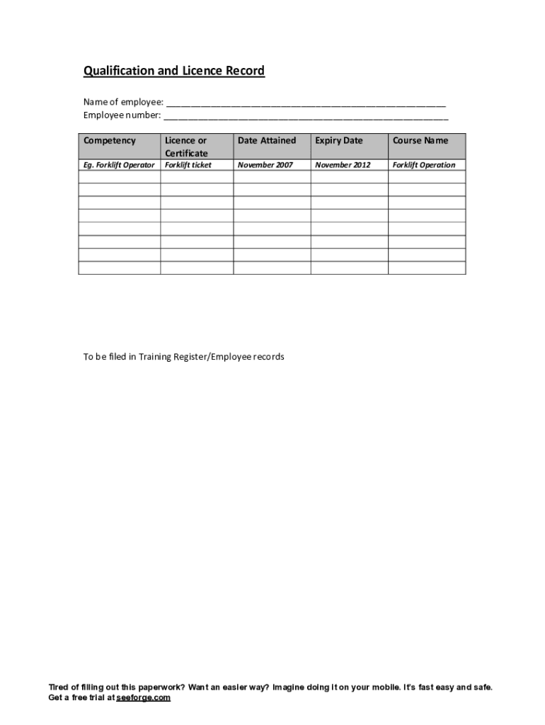 Get the free Employee Qualification and Licence Record