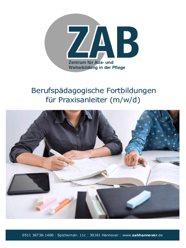 Zentrum fr Aus und Weiterbildung in der PflegeBerufspdagogische Fortbildungen fr Praxisanleiter (m/w/d)0511 367361400 | Spichernstr. 11c | 30161 Hannover | www.zabhannover.deBerufspdagogische Fortbildungen