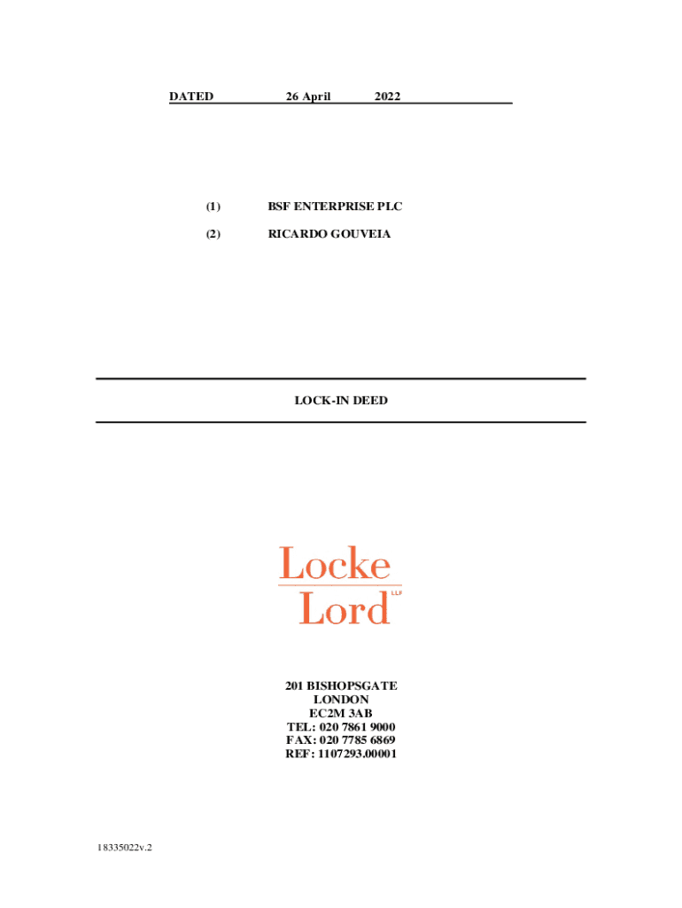 DATED26 April2022(1)BSF ENTERPRISE PLC(2)RICARDO GOUVEIALOCKIN DEED201 BISHOPSGATE LONDON EC2M 3AB TEL: 020 7861 9000 FAX: 020 7785 6869 REF: 1107293.0000118335022v.226 AprilTHIS DEED is made on2022BETWEEN:
