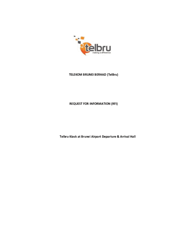 TELEKOM BRUNEI BERHAD (TelBru)REQUEST FOR INFORMATION (RFI)Telbru Kiosk at Brunei Airport Departure & Arrival Hall1)2)Objective Telekom Brunei Berhad (Telbru), is seeking Request for Information (RFI)